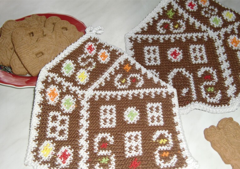 Wie schön ist doch die Weihnachtszeit! Plätzchenduft liegt in der Luft und ein Lebkuchenhaus ist etwas ganz Besonderes. Das sind die idealen Topflappen für die Weihnachtszeit und alle Plätzchenliebhaber.