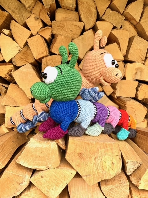 Mein kleiner Neffe wollte eine "große" Raupe haben. Getauft hat er sie "Raupi". Und da jetzt der Winter kommt, hat Raupi noch Söckchen bekommen.