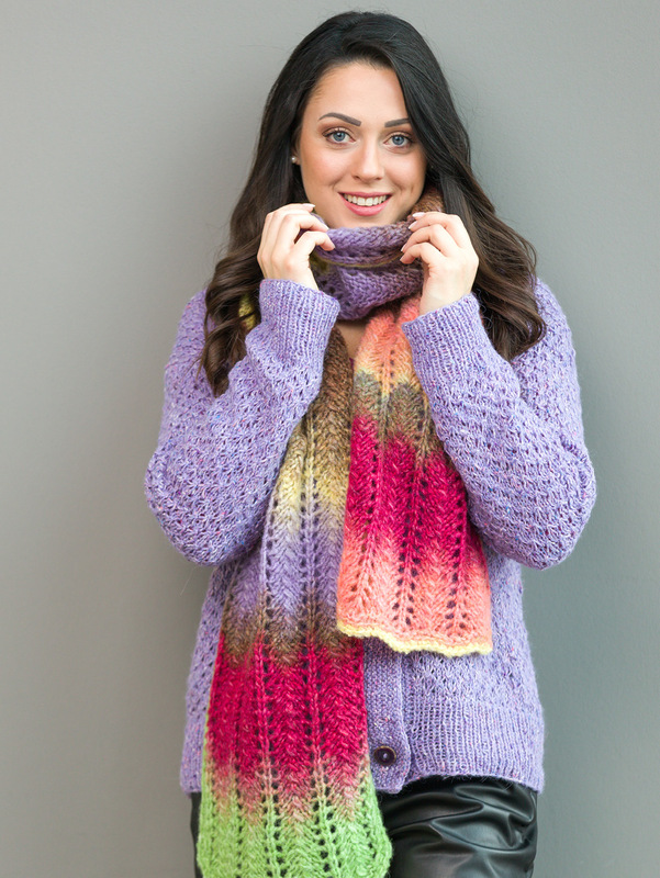 Auffällig ist der wohldosierte Farbverlauf dieses Mischgarns (von blassem Rosa, über Zartgrün bis hin zu erdigem Braun), der viele Möglichkeiten eröffnet, den Schal zu jedwedem Kleidungsstück zu tragen. Das dekorative Wellenmuster aus rechten Maschen und Umschlägen hast du nach ein paar Reihen raus, dann kannst du entspannt stricken und zusehen, wie sich das Farbenspiel des Garns entfaltet. Eine Anleitung für den 25 x 180 cm langen Schal gibt es zum Downloaden.