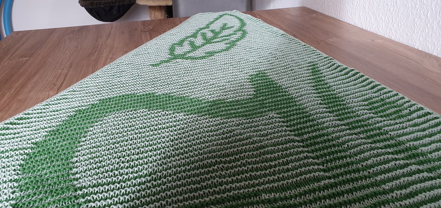 Mein fertiges Tuch hat bei mir eine Größe von etwa 170cm (Breite) x 70 cm (Tiefe).