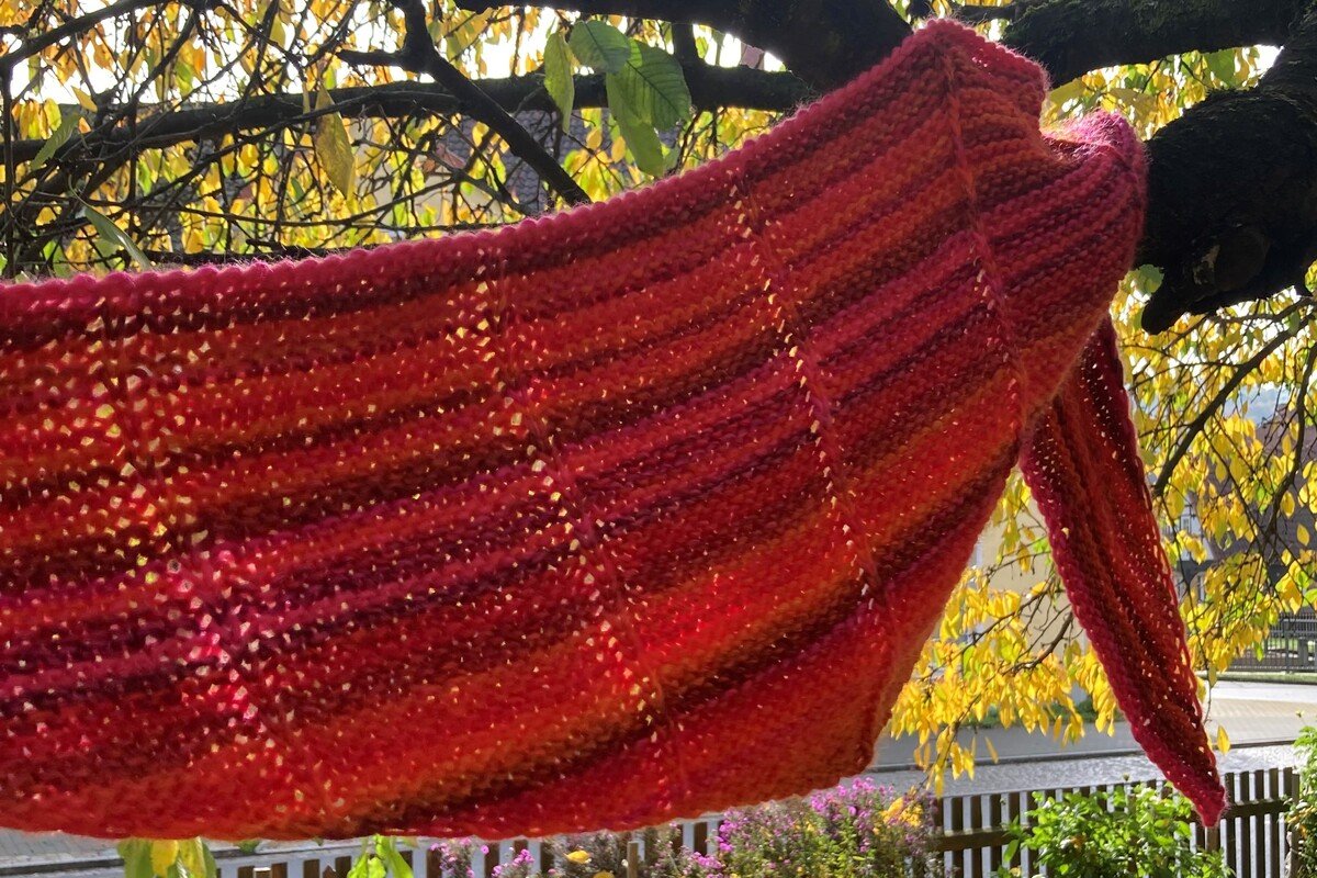 Das Dreiecktuch "Herbstglühen" ist ein einfaches und schnelles Projekt. Nimm ein Garn in kräftigen Farben und strick Dir ein trendiges Accessoire.