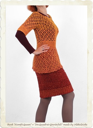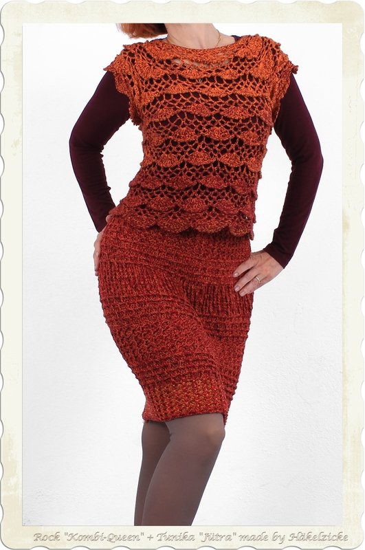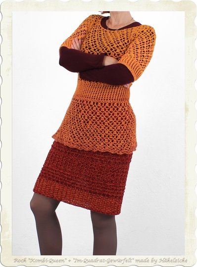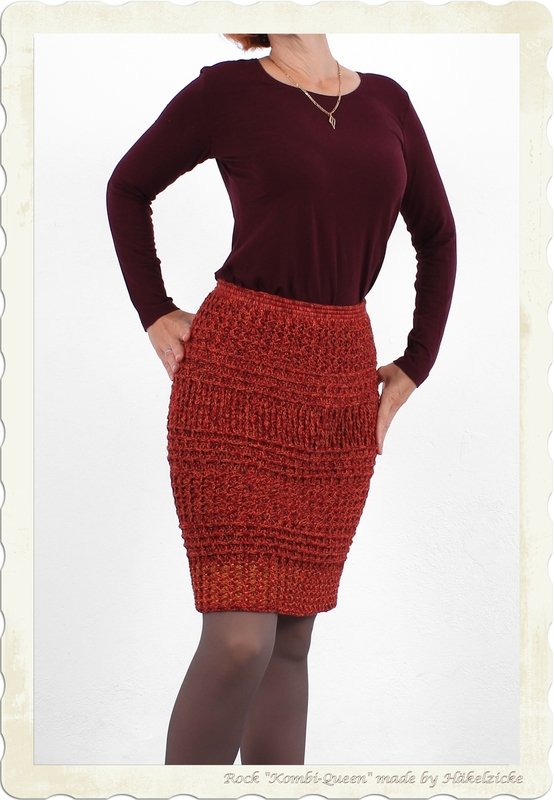 Die "KombiQueen" überzeugt durch die Möglichkeit schmal, weit oder glockig gehäkelt werden zu können. "KombQueen" begeistert durch 4 verschiedene Reliefmuster, die beliebig miteinander kombiniert werden können.