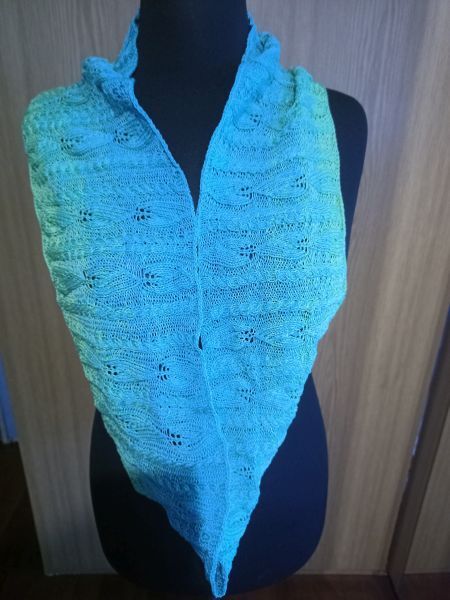 Durch das dominante Muster, bieten sich hier einfarbige und semisolide Garne, Farbverlaufsgarne, wilde Färbungen und ebenso Ringel bildende Garne an.