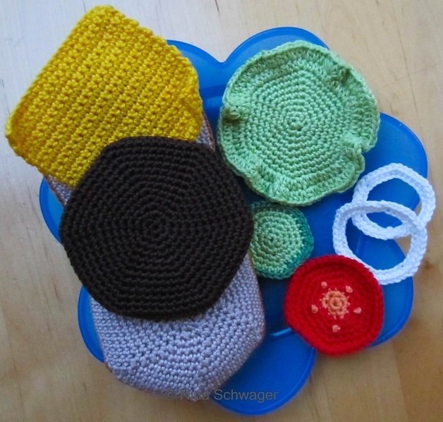 Dann häkeln Sie doch einfach einen "lebensgroßen" Hamburger / Cheeseburger...