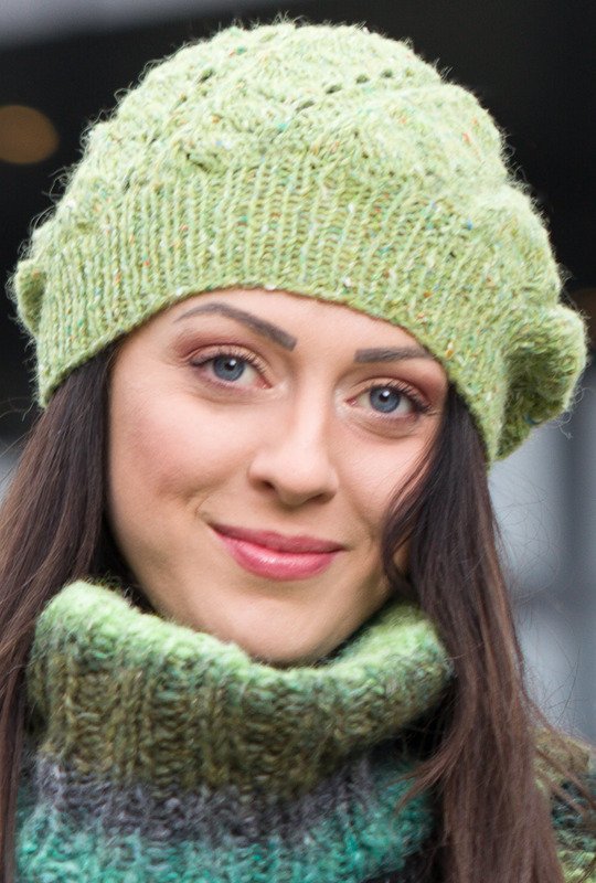 Die lässige Beanie hält warm, sieht cool aus und ist in der frischen apfelgrünen Farbe aus modischem Tweed-Effektgarn mit Alpaka und Seiden-Anteil ein Highlight deiner Herbst- und Wintergarderobe. Der Bund ist ganz klassisch in 1/1-Rippen gestrickt, damit die Mütze gut auf dem Kopf hält. Danach kommt ein einfaches Lochmuster, das locker von den Nadeln geht.