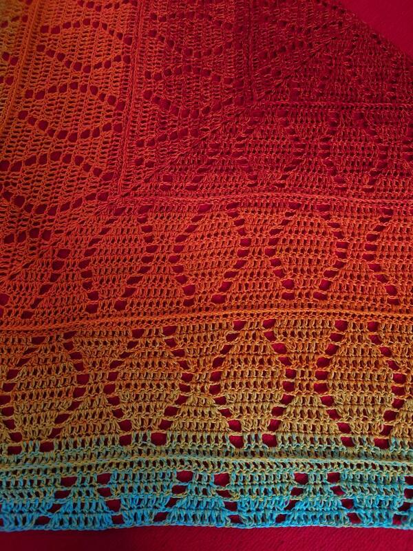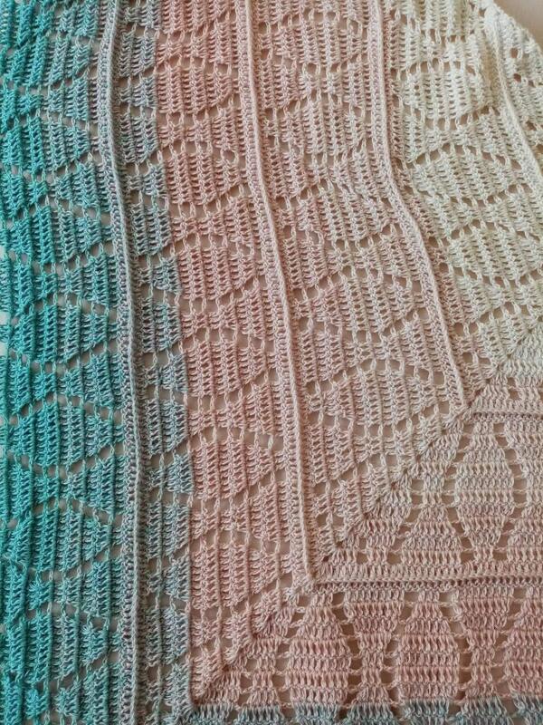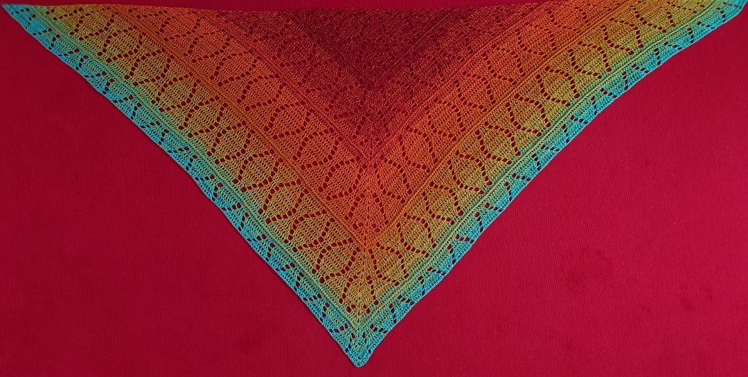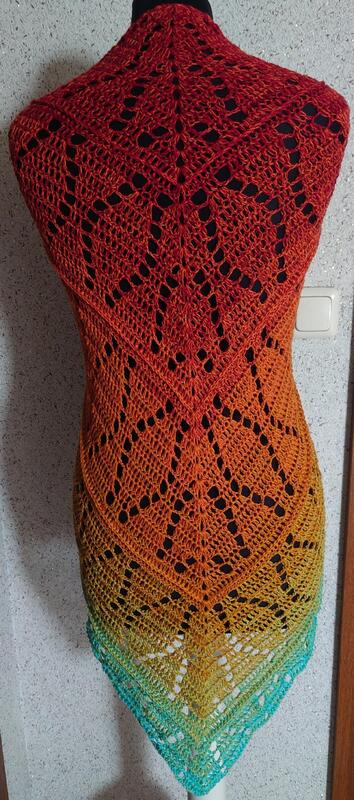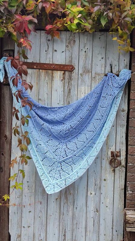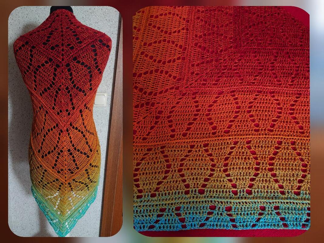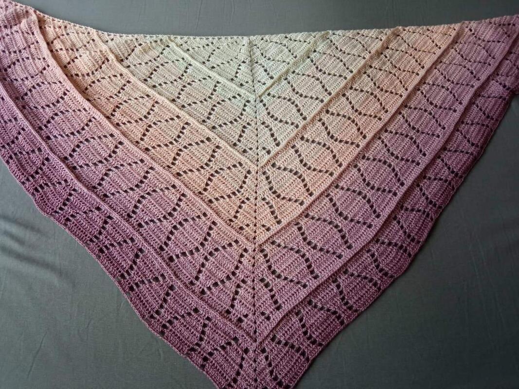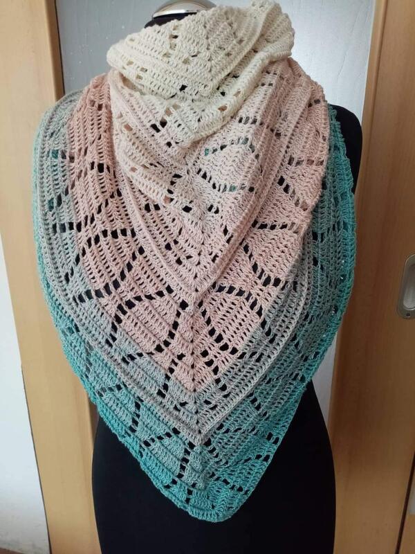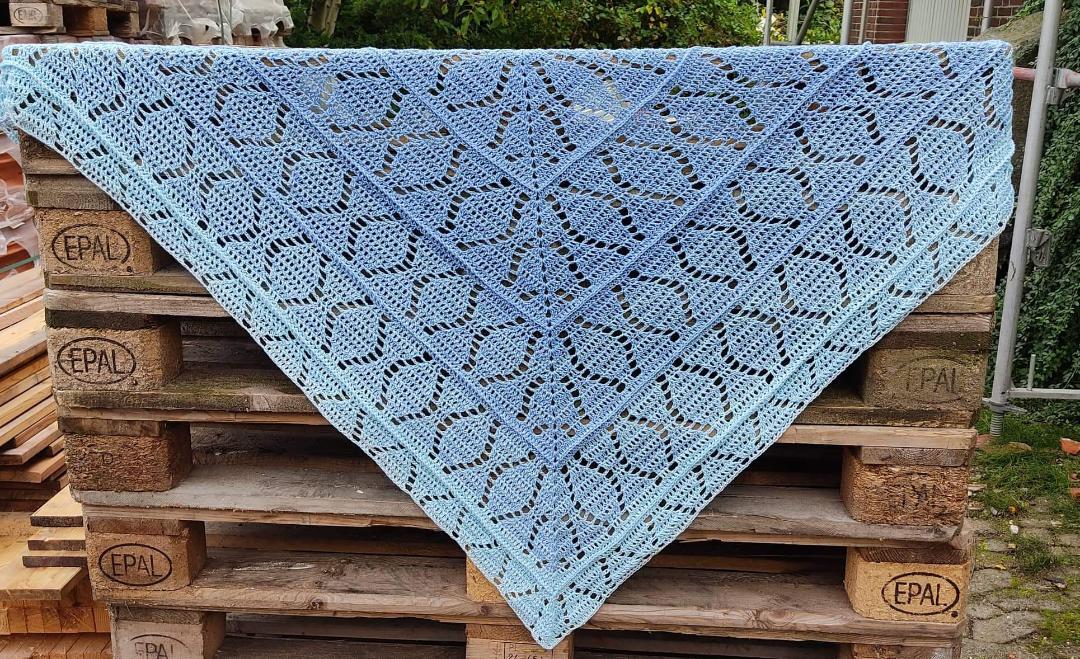 Die Anleitung zum Tuch besteht aus schriftlich ausformulierten Reihen und beinhaltet Häkelschriften.