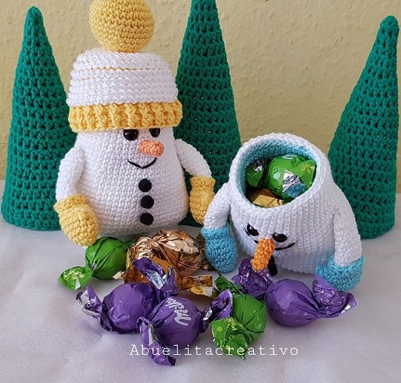 Der lustige Schneemann, der doppelwandig gehäkelt wird, ist innen komplett hohl. Damit bietet er Platz für Süßigkeiten oder andere kleine Geschenke und ist ein tolles Geschenk zum Nikolaustag oder zu Weihnachten. Aber auch als Dekoration macht er eine gute Figur.