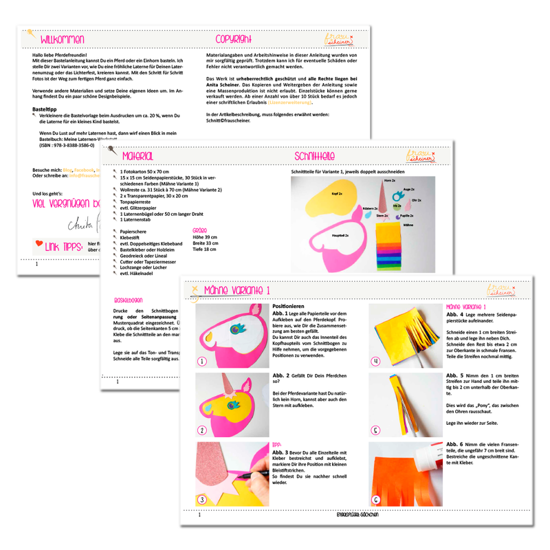 Die herrlich bunten Farben dieser Jahreszeit haben mich zu dieser Laterne inspiriert. Ein fröhliches Einhorn, ein stolzes Ross, dass trotz der Kühle und der Dunkelheit, tapfer seines Weges geht und seinen Reiter sicher ans Ziel bringt.