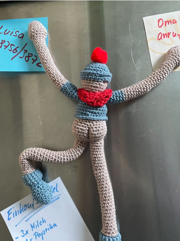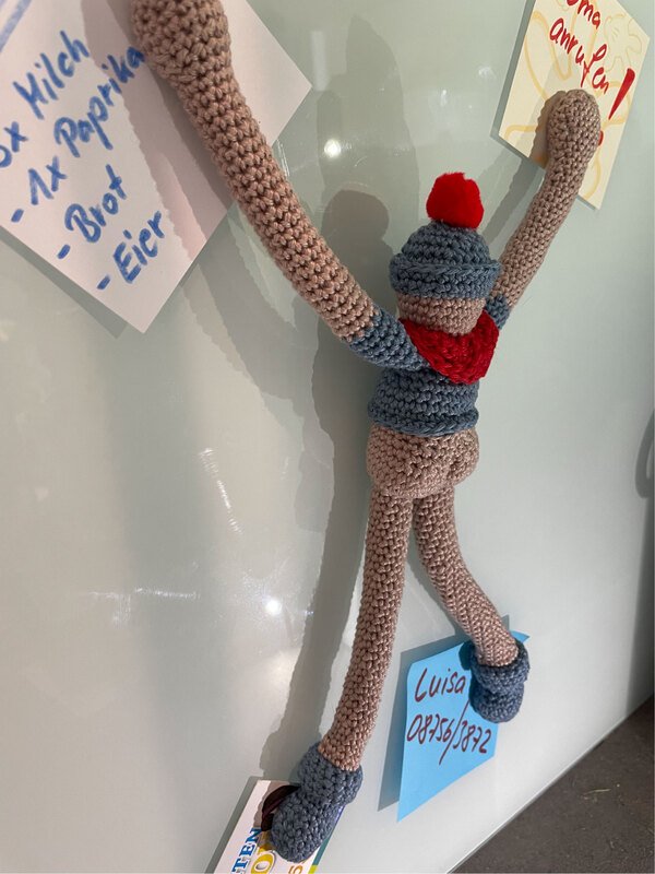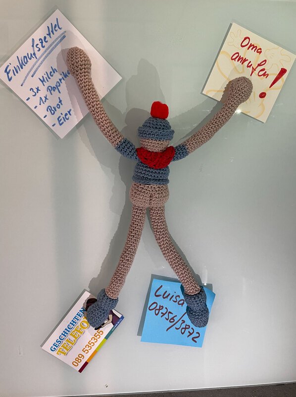 Ihr wollt eine lustige und sehr praktische Deko? – Dann häkelt Euch doch ein Magnet-Männchen für die Pinnwand… ;-)