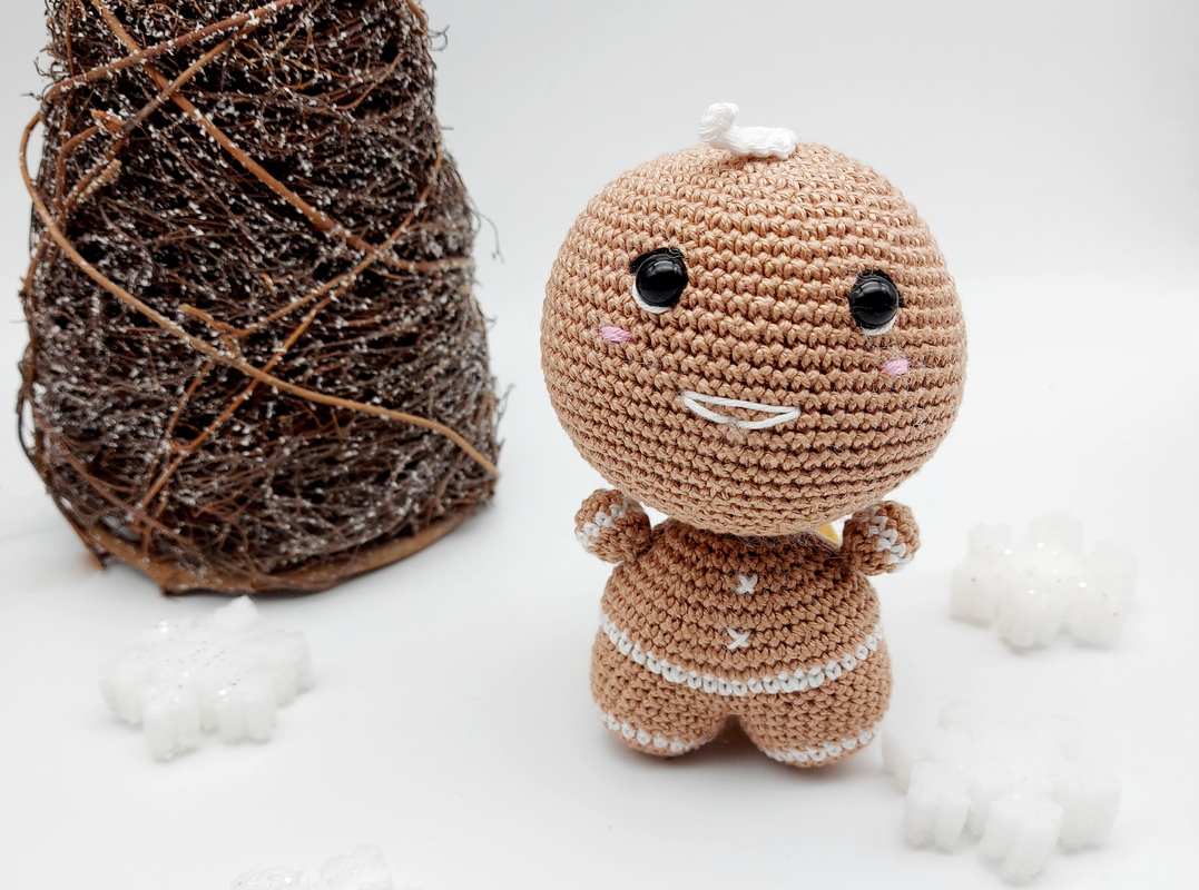 Mit dieser ausführlichen Anleitung könnt ihr euch ganz einfach selber einen süßen Lebkuchenmann häkeln. Mit vielen Bildern detailliert erklärt.