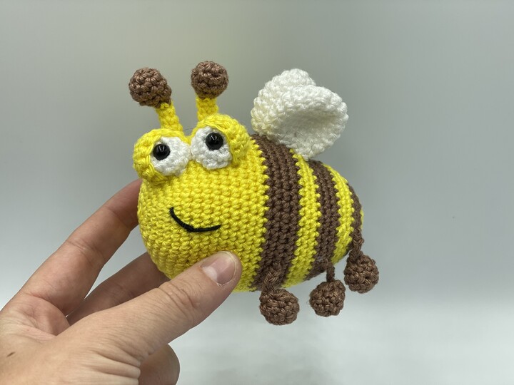 Mit dieser Häkelanleitung kannst du sehr einfach diese süße faule Biene nachhäkeln.