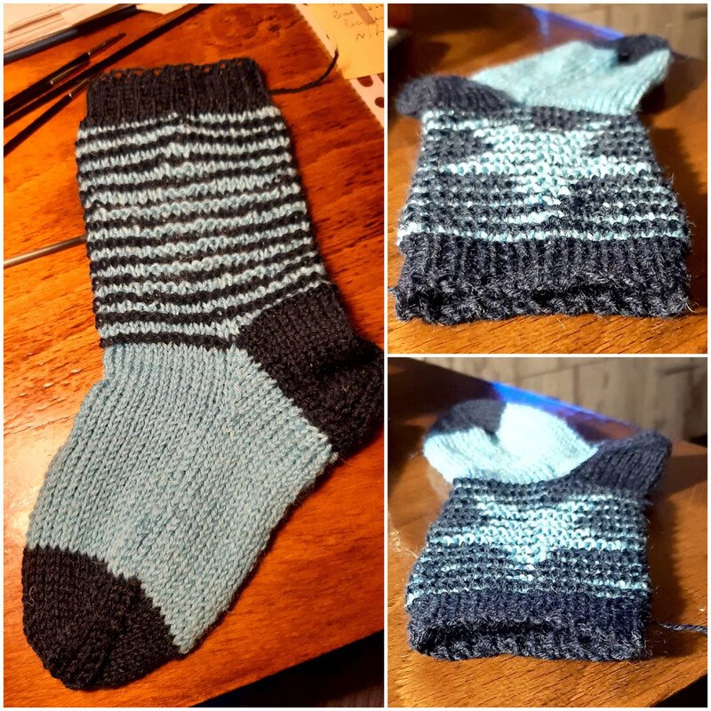 Du solltest bereits Erfahrung mit dem Stricken von Socken und dem Illusionsstricken haben. Um die Technik des Illusionsstrickens kennenzulernen, findest du hier ein sehr anfängerfreundliches Stück.