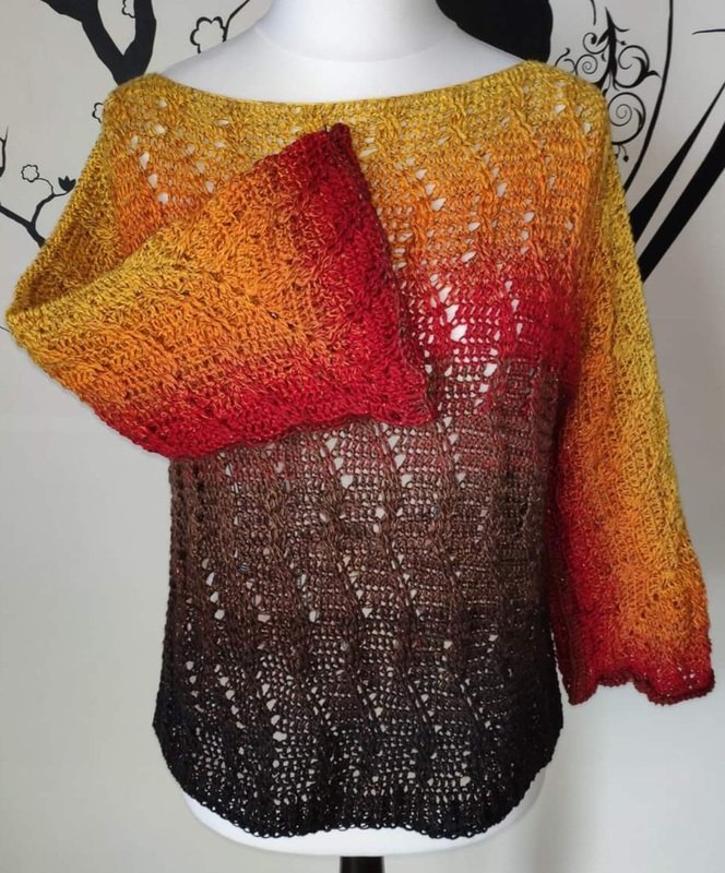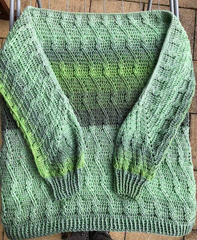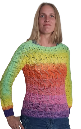 Der Pullover kann in jeder Kleidergröße gehäkelt werden.