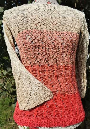 Der Pullover wird in der bekannten RVO Technik gehäkelt.