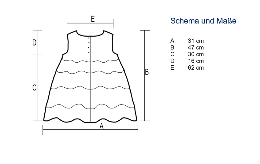 Derzeit umfasst die Anleitung die Größe 104/110, sie passt aber bis ca. 122
