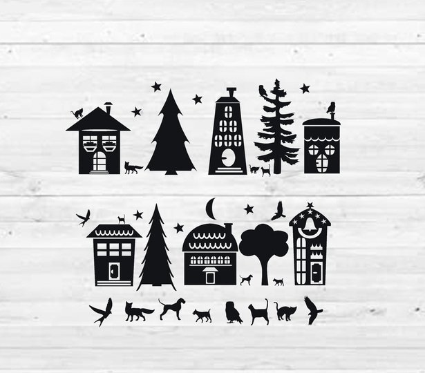 In dieser Plotterdatei erhältst du Häuser, Bäume und Tiere. Ob du Vinylfolie, Flexfolie, Flockfolie, Papier, Karton oder Karten schneiden möchtest, spielt keine Rolle. Diese Grafik ist als SVG, JPEG, PNG und PDF Datei vorhanden und kann somit mit jedem gängigen Plotter geschnitten werden. Dies ist kein fertiges Produkt. Der Download beinhaltet die SVG Datei, die mit Schneideplotter geschnitten werden kann.