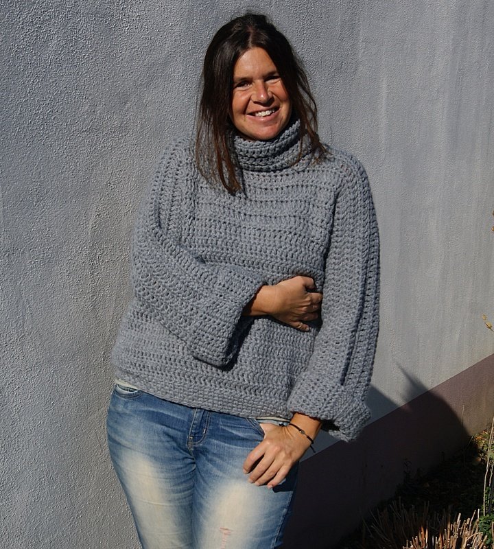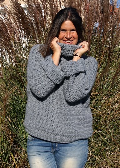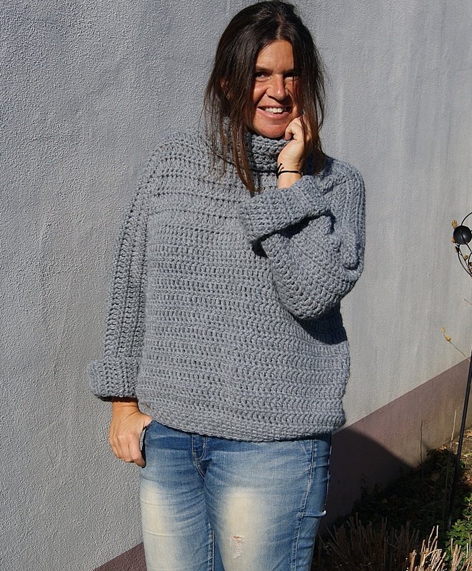 verwendete Häkelnadel: 10,0 mm (damit der Pulli schön locker fällt)