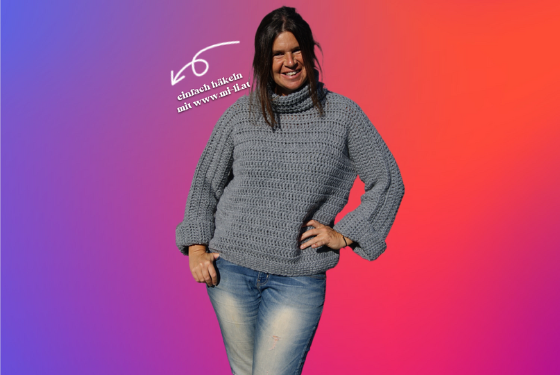 Einfacher geht’s nicht! Cooler, lässiger und kuschelig bequemer Häkelpulli mit kuscheligem Rolli in angesagtem Oversize-Look – perfekt wärmend für kalte Tage. Flott gehäkelt kann man sich bald darauf freuen, ihn auszuführen!