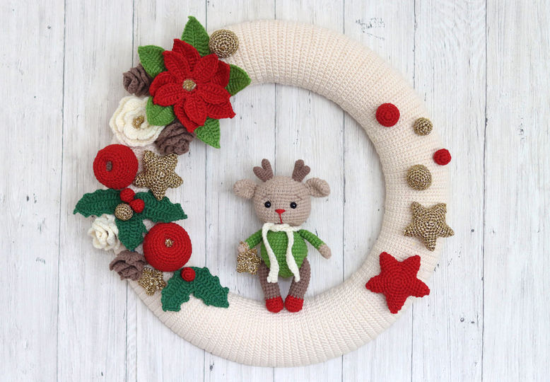 PDF Häkelanleitung Häkelanleitung 2 in 1 Türkranz Rentier oder Mädchen, Weihnachtsdeko