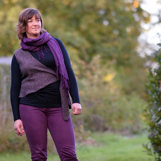 Ein originelles und ebenso schickes, schnell und einfach zu nähendes Teil ist Alcea, eine asymmetrische, einseitige Weste, die man irgendwo zwischen Kleidungsstück und Accessoire definieren wird. Diese besondere Art der Weste, die wie ein Gürtel gerade geschnittene Kleider komplettiert, aufpeppt und auf Taille bringen kann, ist zudem mit ihrer eingearbeiteten Tasche auch noch recht praktisch. Nebenbei bemerkt wärmt sie auch die Nieren und kaschiert in wunderbarer Weise den Bauchbereich ganz hervorragend. Sehr interessant, weil noch vielseitiger wäre diese Weste als Wende – Variante!