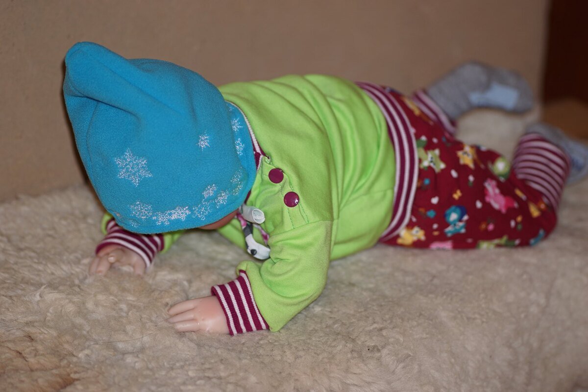 Es hat einen lockeren Sitz und passt eurem Kind so auch eine längere Zeit gut.