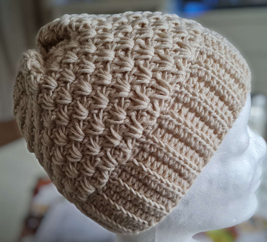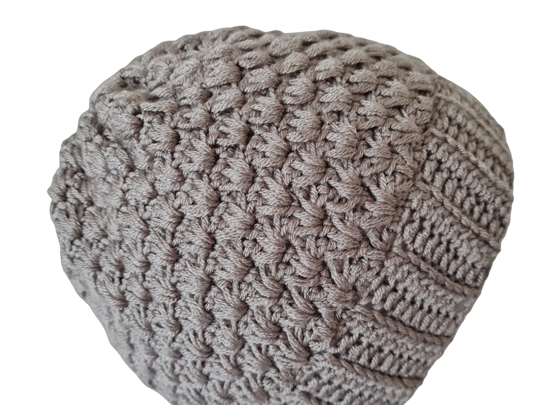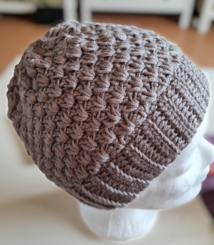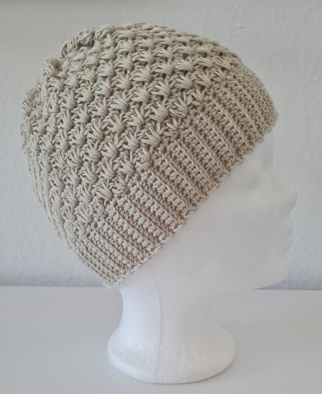 Die Mütze kann in jeder beliebigen Größe gehäkelt werden. Mein Modell habe ich passend für einen Kopfumfang mit ca. 54cm gearbeitet. In der Anleitung findet ihr eine Tabelle mit Maßangaben für einen Kopfumfang von 52cm bis 63cm