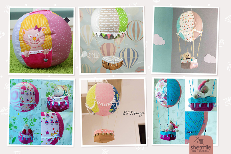 Nähanleitung und Schnittmuster gestaltet als PDF-E-Book für einen Adventskalender und Kinderzimmerdeko Adventsballon in Form eines Heißluftballons.