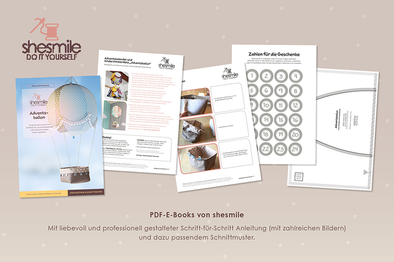 PDF-E-Books von shesmile: Diese leicht verständliche Schritt-für-Schritt-Anleitung mit vielen Fotos ist auch für Nähanfänger geeignet, denn die sehr ausführliche Fotoanleitungen begleitet dich bei jedem Schritt.