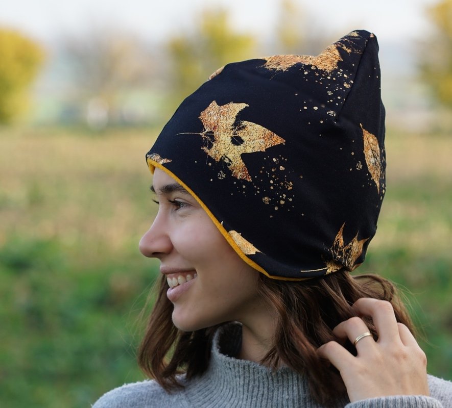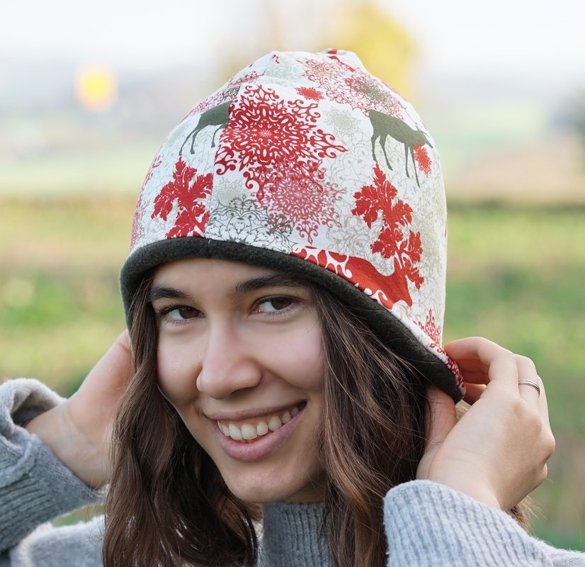 Vor dem Zuschnitt bitte den Kopfumfang messen, damit die Mütze nachher auch wunderbar passt. Wenn euer Stoff relativ dünn und elastisch ist, könnt ihr die Mütze auch eine Nummer kleiner zuschneiden.