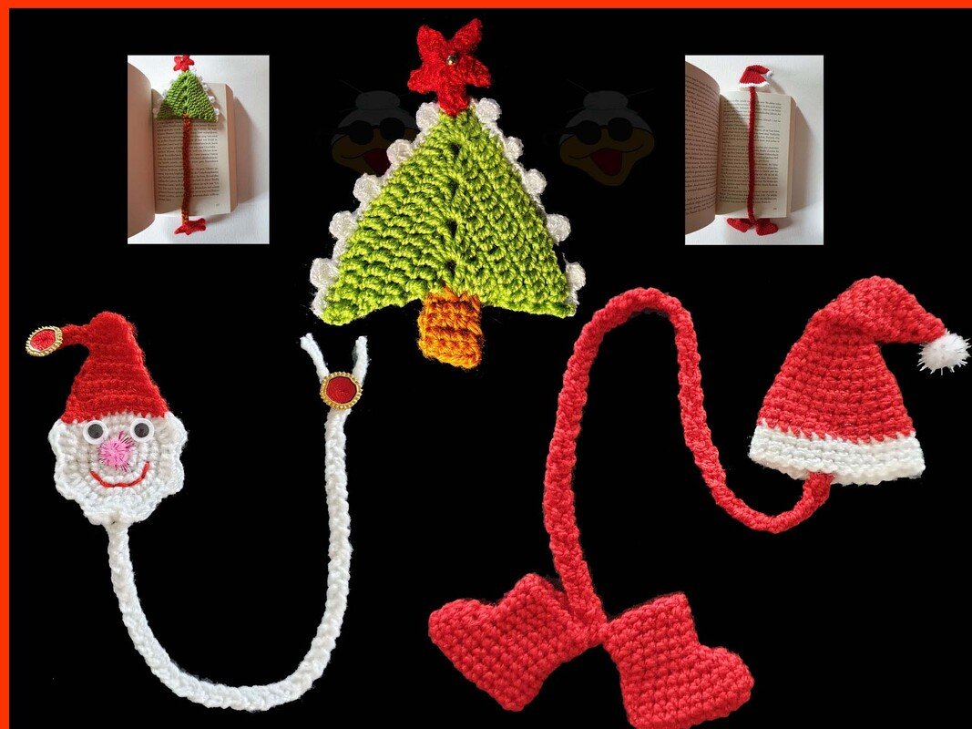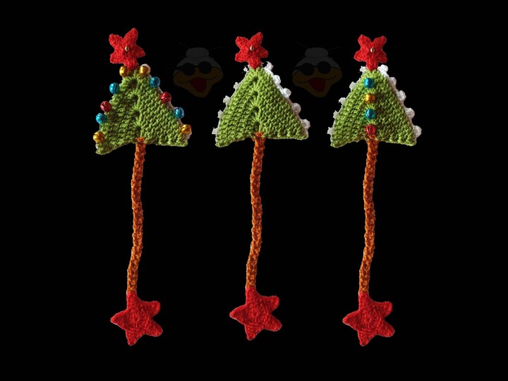 Mit diesen Anleitungen kannst du 3 verschiedene weihnachtliche Lesezeichen häkeln.