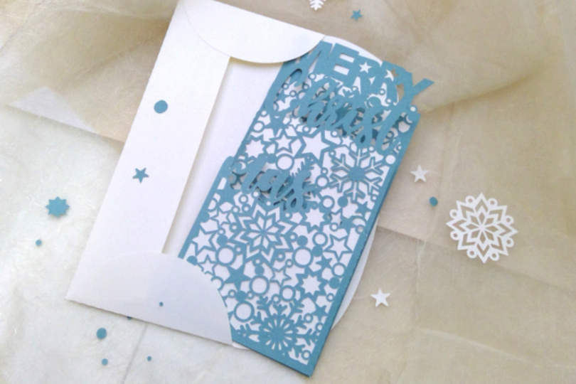 Faltkarten für Weihnachten mit Papier. Frohe Weihnachten.