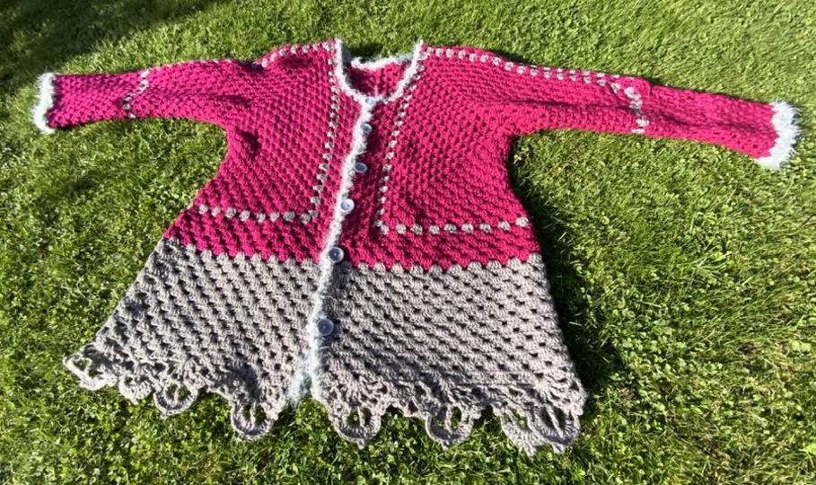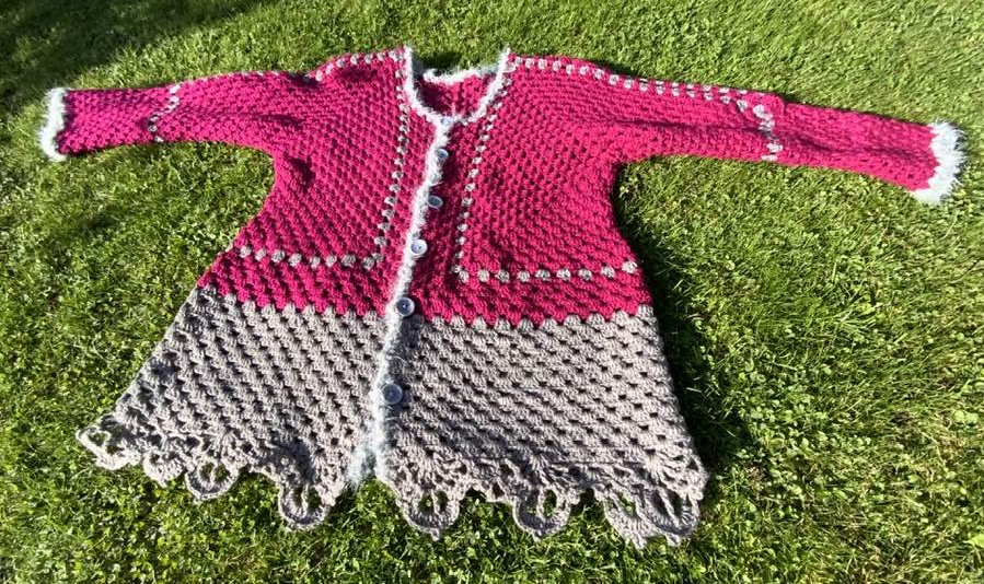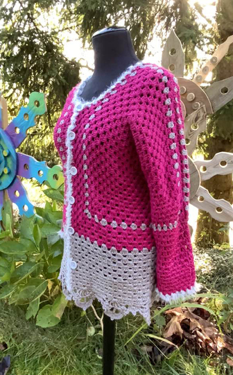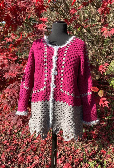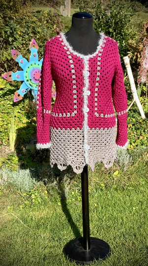 Kleinere Mengen von fertigen figurbetonte Hexagon-Jacke mit engen Ärmeln (bis 5 Stück)...dürfen mit Hinweis auf die Designerin (Petra Perle) auf Weihnachtsmärkten und Handarbeitsmärkten gerne verkauft werden!!! Bitte NICHT zu billig sein!
