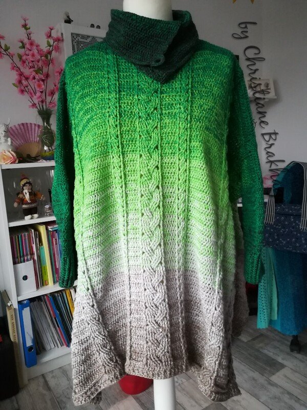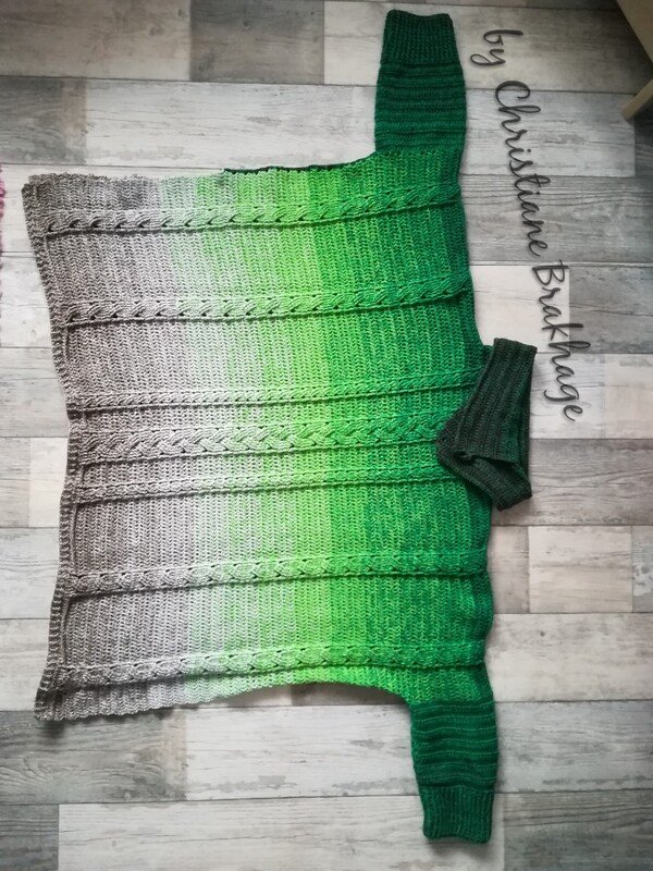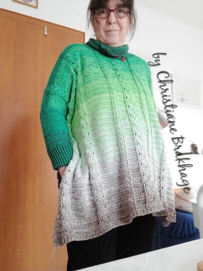 Selbstverständlich ist der Poncho-Pullover in der Größe variabel.