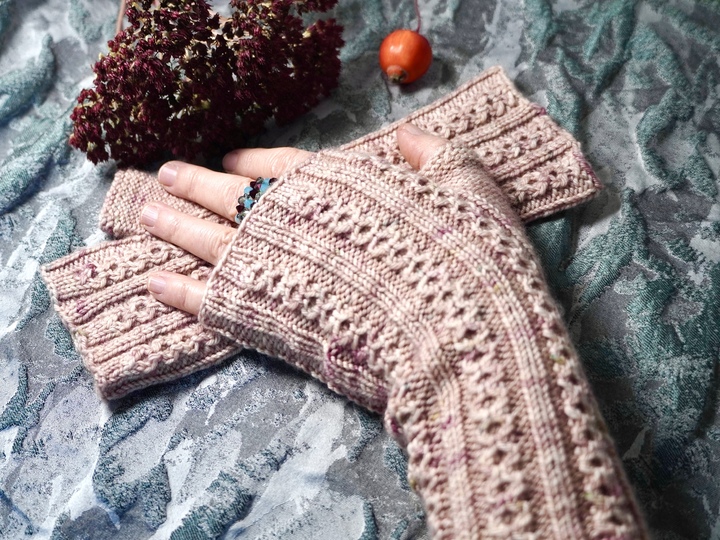Gestrickt werden die fingerlosen Handschuhe mit Daumenkeil und angestricktem Daumen. Sie sind durchgehend in einem hübschen und unkomplizierten Zopf-Rippenmuster gearbeitet, an das sich auch ambitionierte Anfänger trauen dürfen. Denn für die kleinen Verkreuzungen der Maschen wird keine zusätzliche Zopfnadel benötigt! Sozusagen ein Zopfmuster to go! Ein verlinktes Video zeigt Euch außerdem sehr anschaulich, wie das geht und nach ein paar ersten Runden habt Ihr das Muster verinnerlicht!