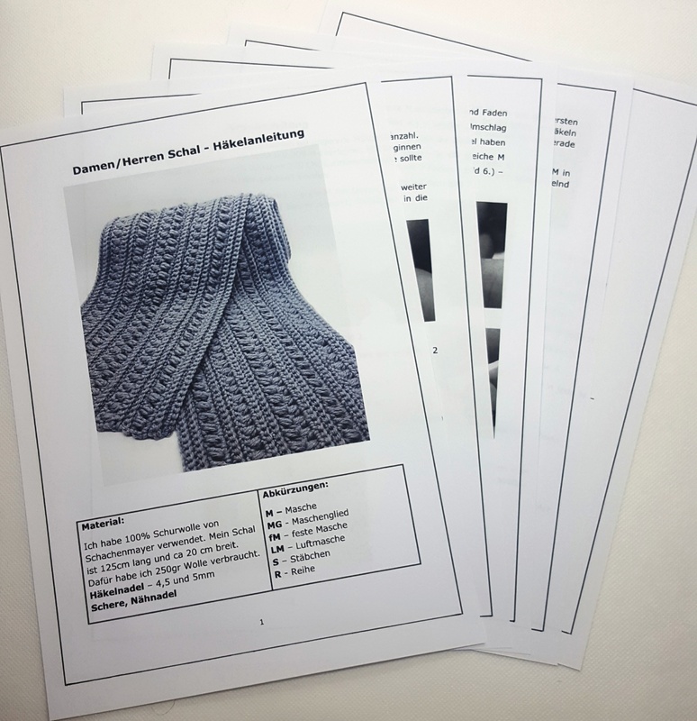 Schal kann mit jede Wolle gehäkelt werden. Schal auf dem Bild ist mit 100% Schurwolle gehäkelt.
