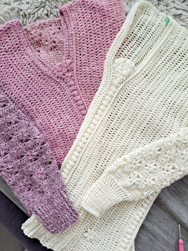 Der Flora Pulli wird an einem Stück quergehäkelt und ist daher auch ideal für Farbverlaufsgarne.