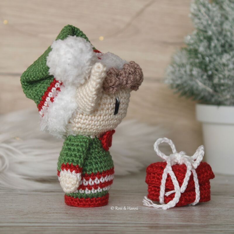 Häkelanleitung "Weihnachtself Phil mit kleinem Geschenk“