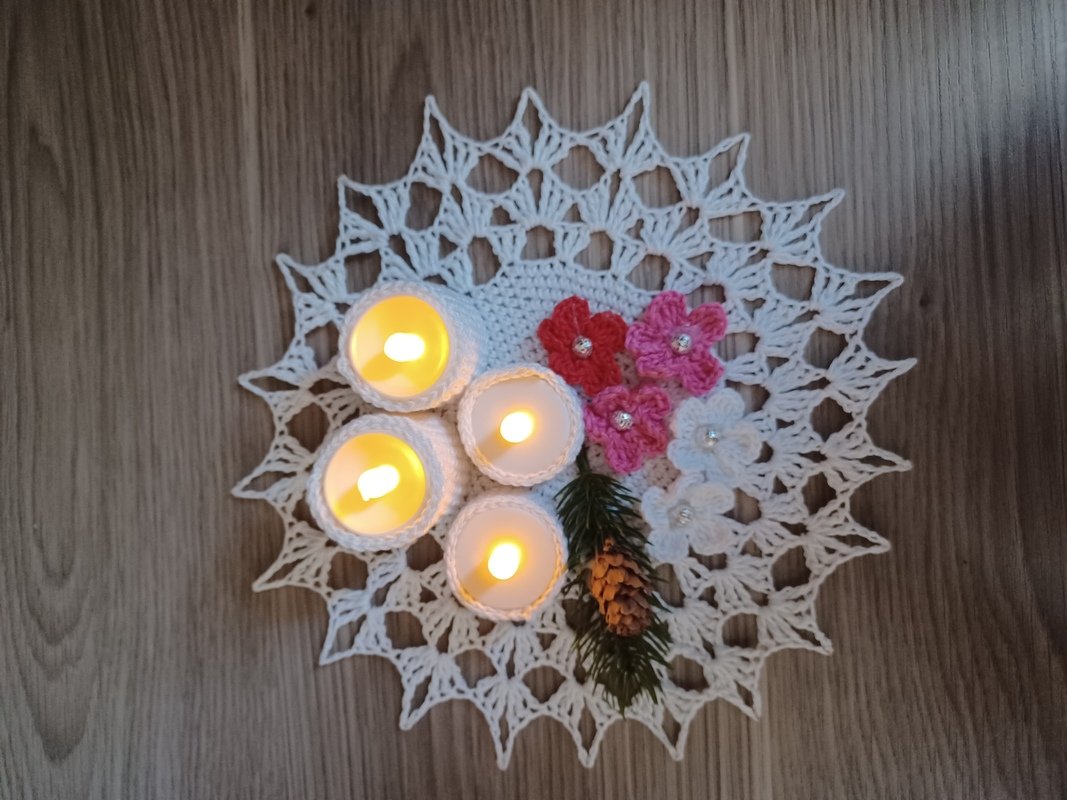 Die Kerzen werden hier durch flackernde Teelicher ersetzt , so kann man es sich gefahrlos gemütlich machen.