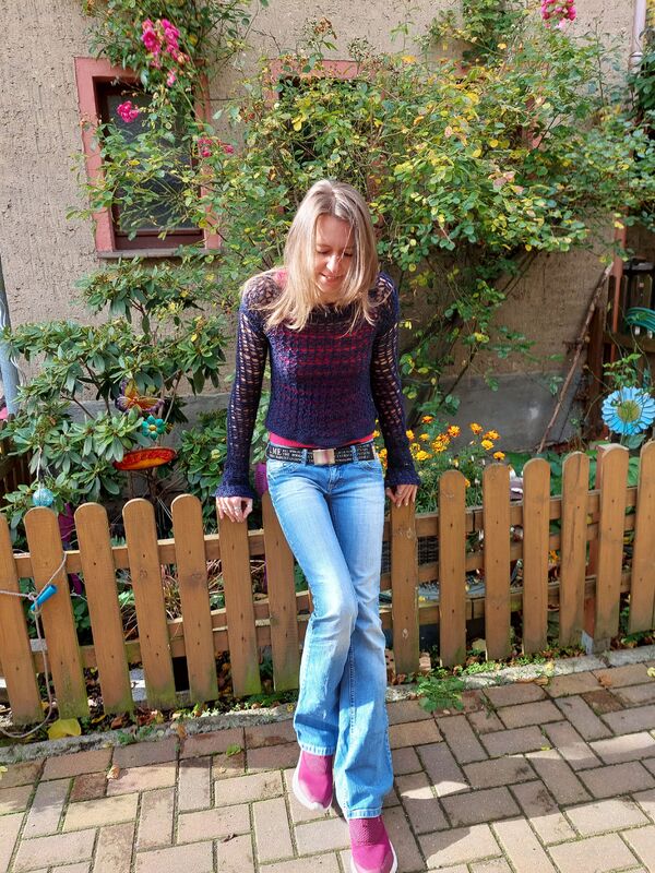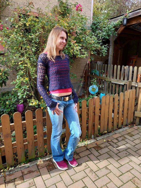 Ihr könnt selbstverständlich auch eine andere Wolle / Farbe / Nadel für das Langarmshirt verwenden.