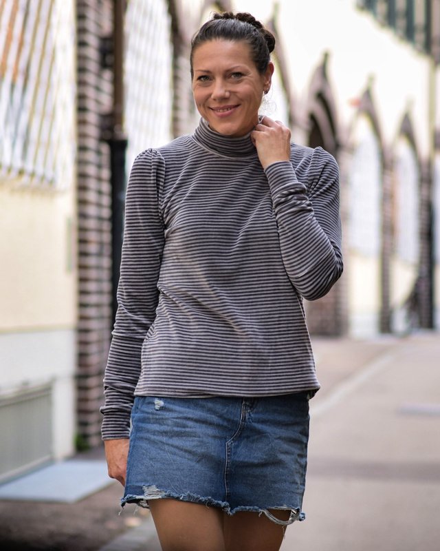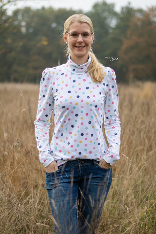 Der Rollkragenpullover ist ein zeitloser Klassiker, mit dem du in allen Lebenslagen gut gekleidet bist. Du kannst ihn sportlich mit einer Jeans kombinieren, eine lässige Strickjacke darüber tragen oder einen eleganten Blazer. Ein besonderes Highlight sind die angesagten Puffärmel, die deinen Rolli zu einem echten Hingucker machen. Selbstverständlich sind aber auch normale Ärmel im Schnittmuster enthalten.
