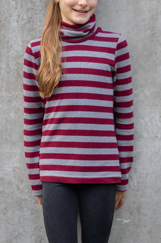 Der Rollkragenpullover ist ein zeitloser Klassiker, mit dem du in allen Lebenslagen gut gekleidet bist. Du kannst ihn sportlich mit einer Jeans kombinieren, eine lässige Strickjacke darüber tragen oder einen eleganten Blazer. Ein besonderes Highlight sind die angesagten Puffärmel, die deinen Rolli zu einem echten Hingucker machen. Selbstverständlich sind aber auch normale Ärmel im Schnittmuster enthalten.