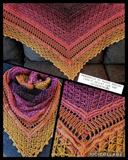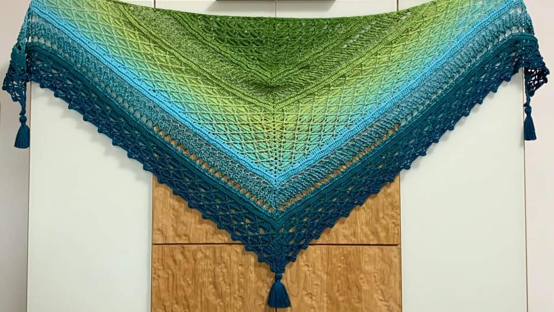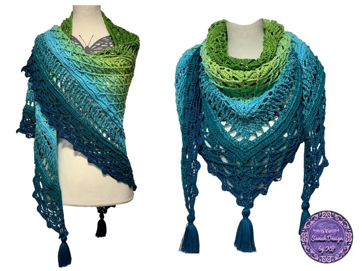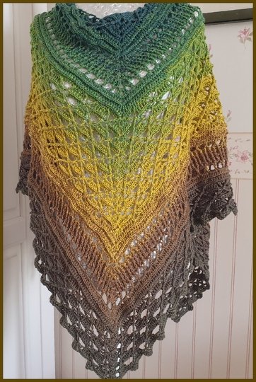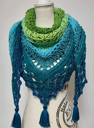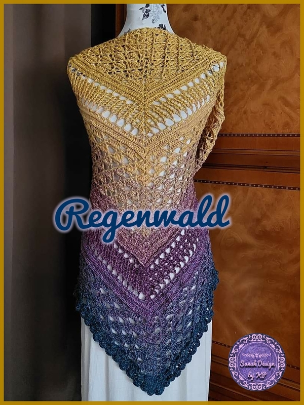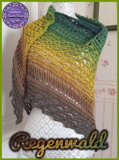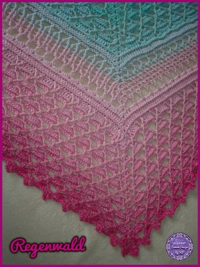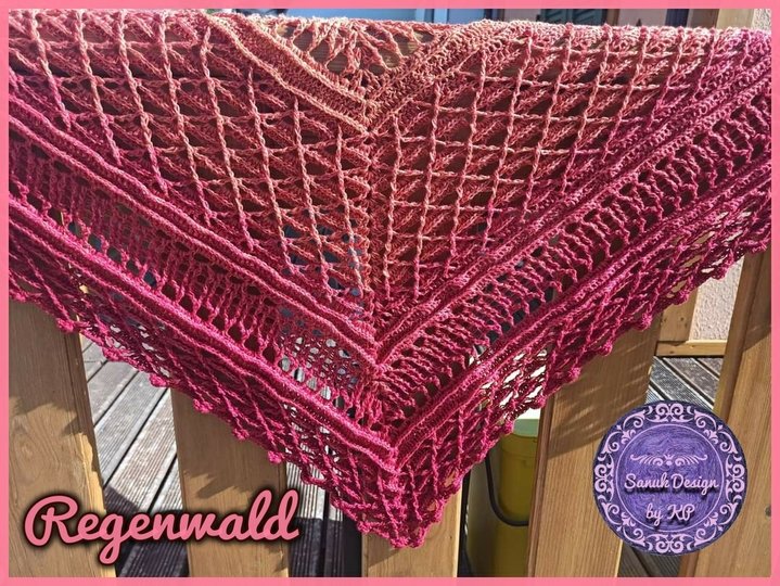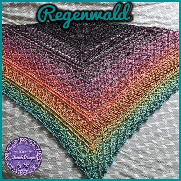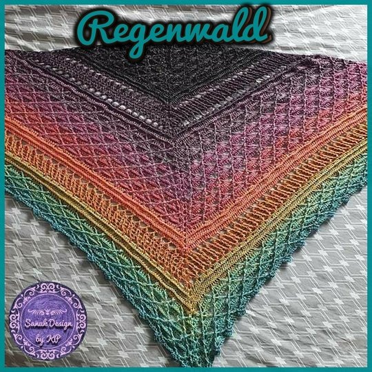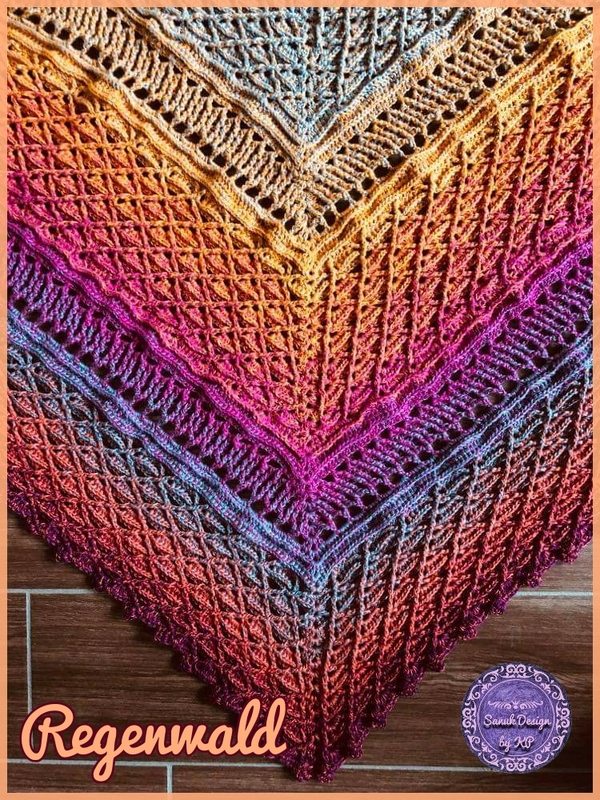 Dieses wunderschöne, gehäkelte Dreiecktuch heißt Regenwald, weil ich einen Bobbel mit dem Namen Amazonas verwendet habe und die Farben so wunderbar saftig wie ein Regenwald aussehen. Man möchte sich direkt hinein kuscheln und die Wärme genießen. Du kannst Deinen Regenwald so groß machen wie Du gerne möchtest. Dies ist durch einfaches Wiederholen nach der vorletzten Reihe möglich. Und nach jeder beliebigen Reihe wird dann die Abschlussreihe gearbeitet.