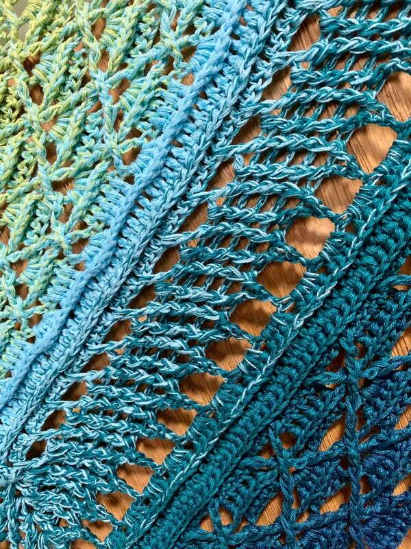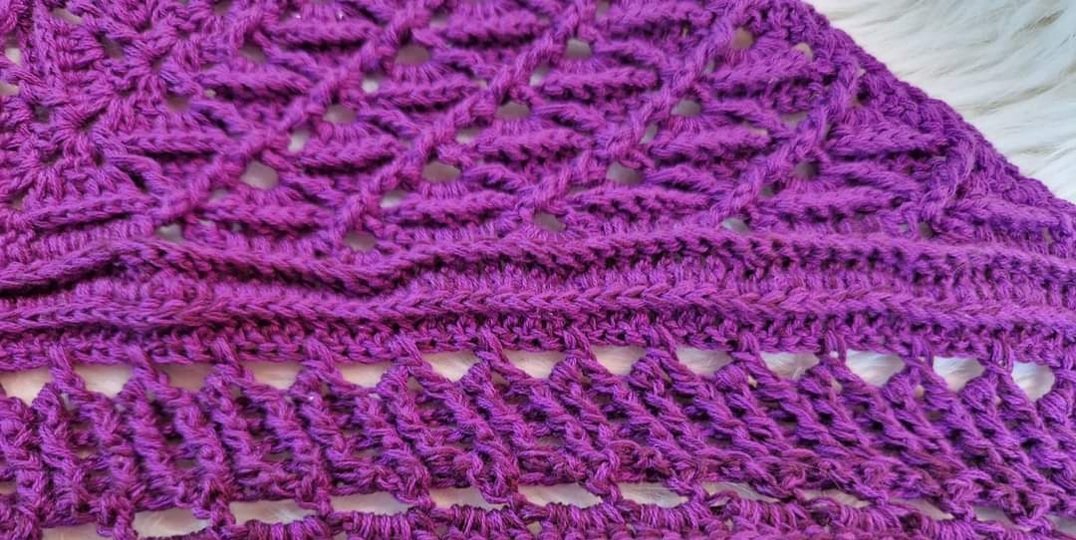 Außerdem wird erklärt, wie Du einen wirklich geraden Rand häkeln kannst und was Du machen kannst, um Dein Tuch etwas flacher zu gestalten.