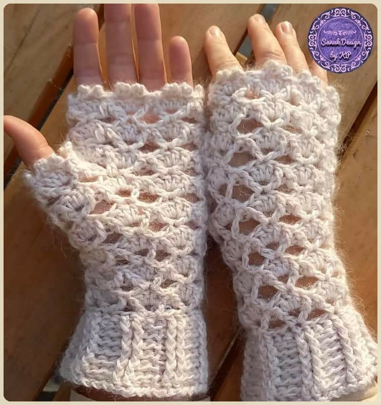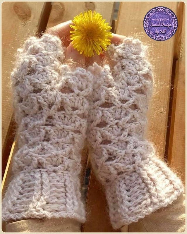 Die Pulswärmer Mary sind wärmer als ihr hübsches Lochmuster erahnen lässt. Egal, ob Du sie locker oder eng anliegend arbeiten möchtest, sie werden Dich schmücken!