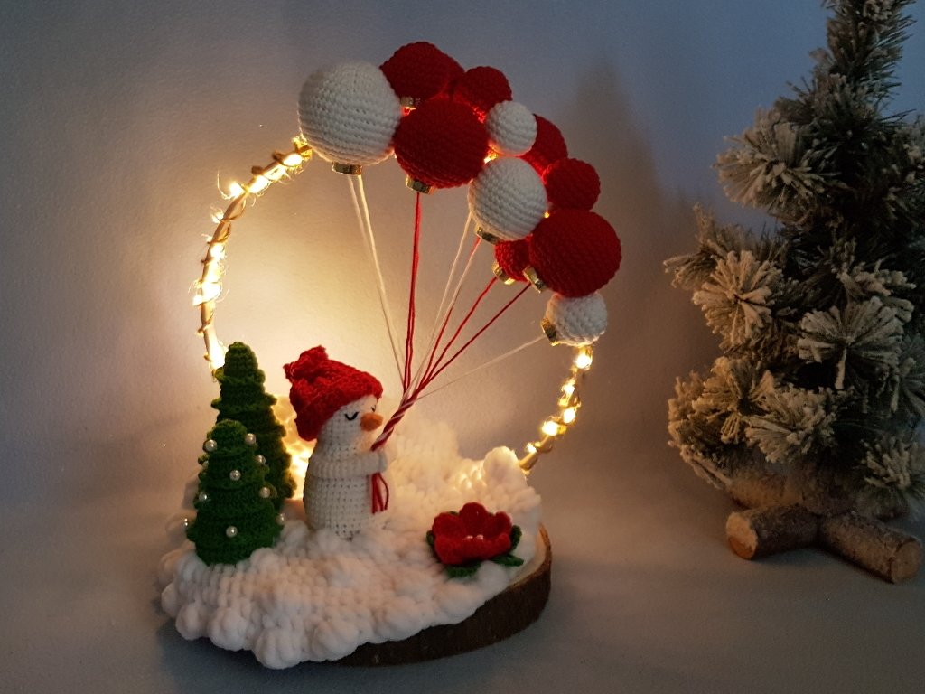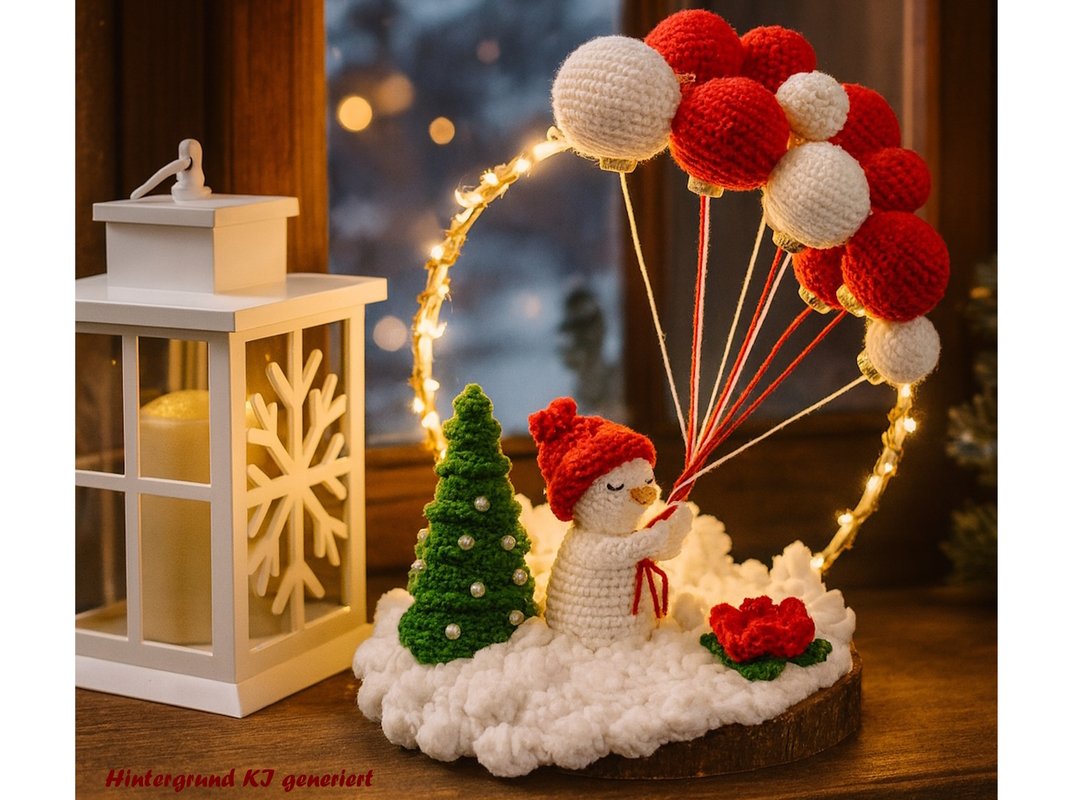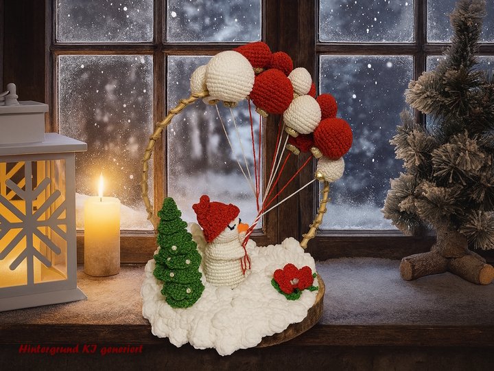 (Die Figur ist komplett handgehäkelt. Der Hintergrund ist mit Hilfe einer KI erstellt.)