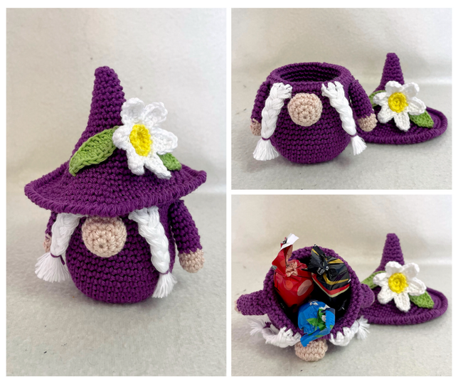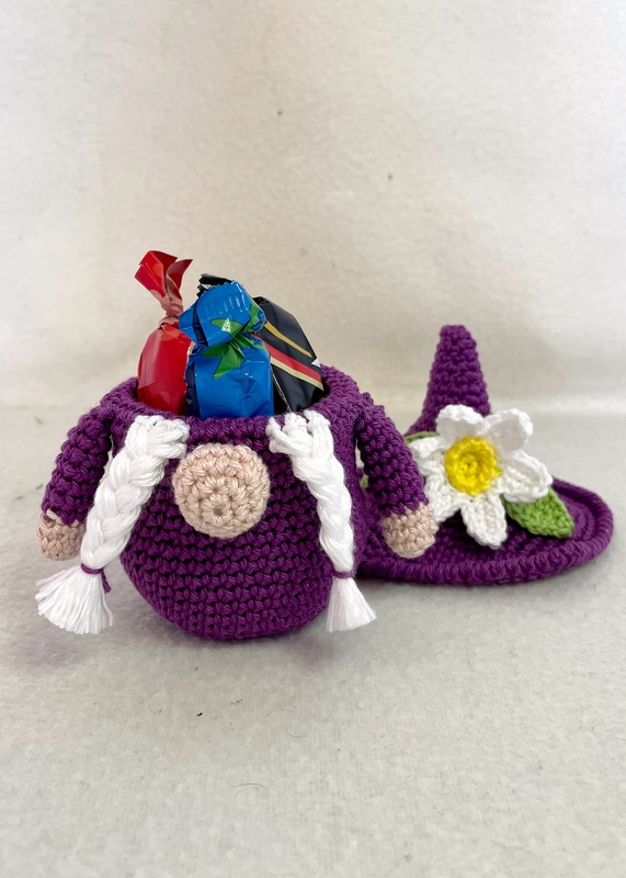 Ob als dekoratives Element oder als Geschenkverpackung - die Wichtelin Violett bringt eine liebevolle, handgemachte Note in jede Wohnumgebung. Ein Must-Have für alle Handarbeitsbegeisterten.
