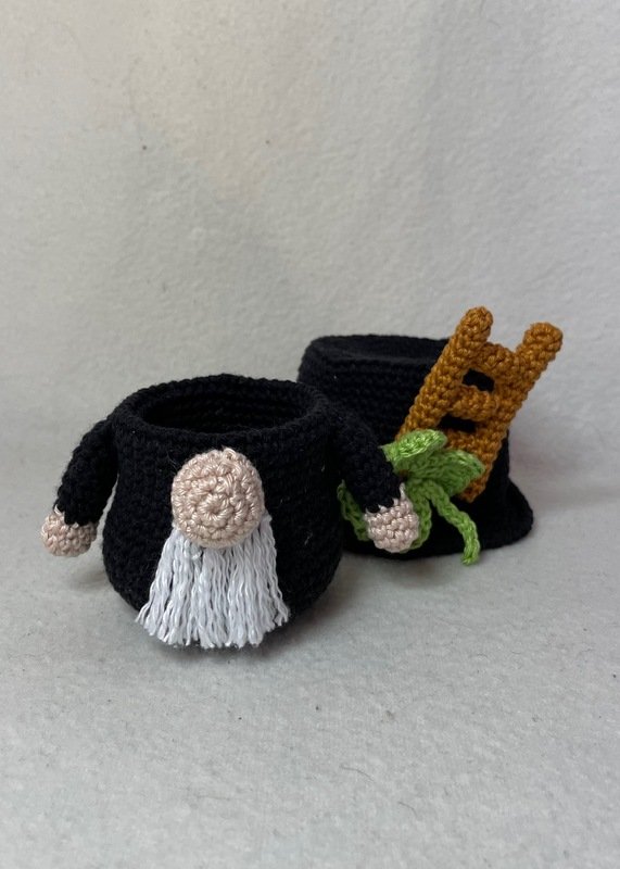 Mit diesem Häkelprojekt erschaffst du nicht nur ein süßes Deko-Element, sondern auch ein praktisches Utensilo. Perfekt, um kleine Dinge darin aufzubewahren oder als originelle Verpackung für Neujahrsgeschenke!