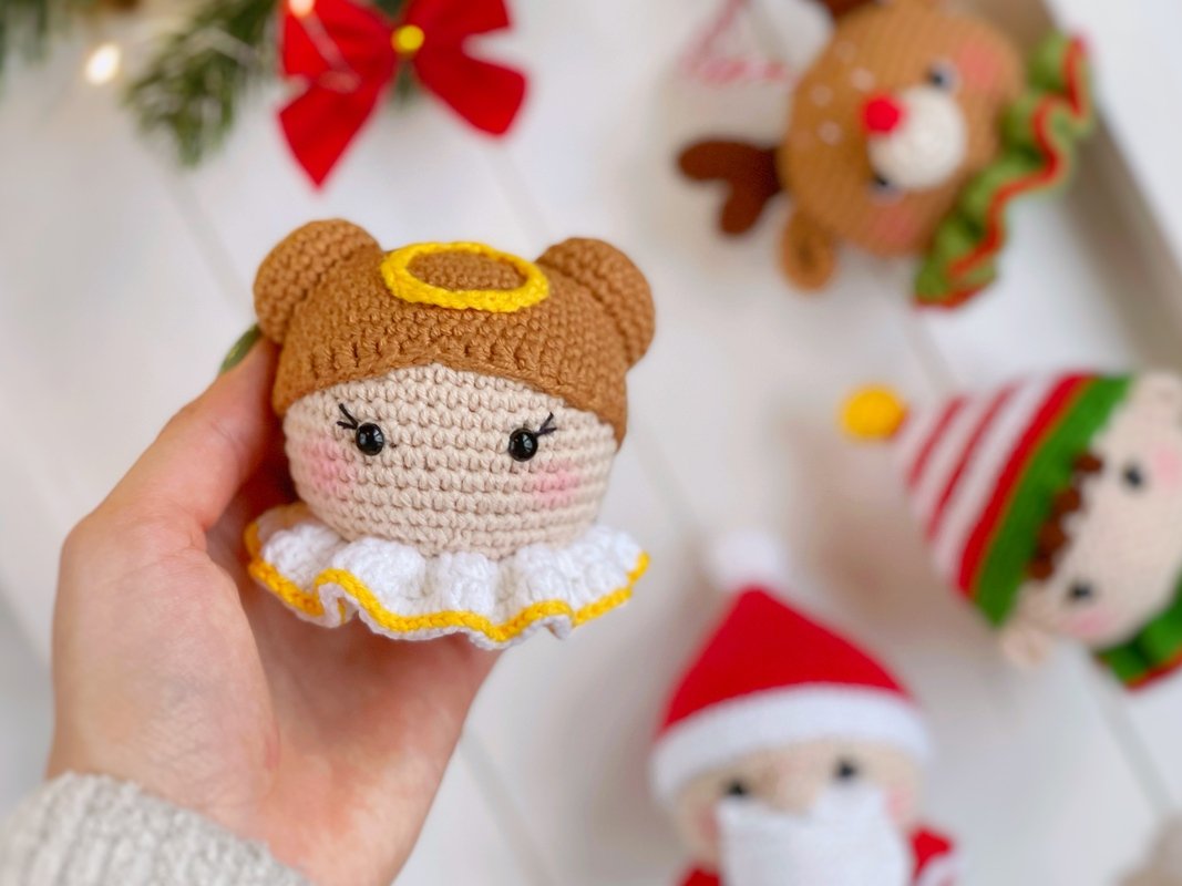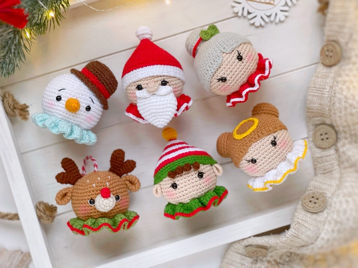 Wenn Sie diesem einfachen Häkelmuster folgen, können Sie diese niedlichen Amiugurmi-Weihnachtsornamente herstellen - Weihnachtsmann, Frau Claus, Engel, Elf, Rentier, Schneemann! Sie können Ihr Zuhause oder Ihren Weihnachtsbaum schmücken :)