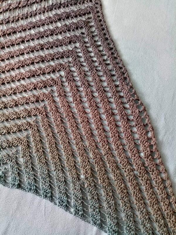 Die Anleitung zum Tuch besteht aus schriftlich ausformulierten Reihen und beinhaltet Häkelschriften.