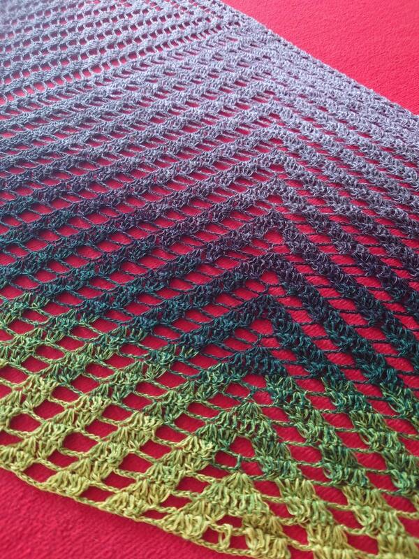 Das Tuch Jonna besteht aus sich immer wiederholenden Reihen, die ein schönes Gesamtmuster ergeben.